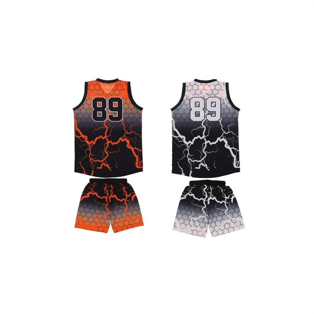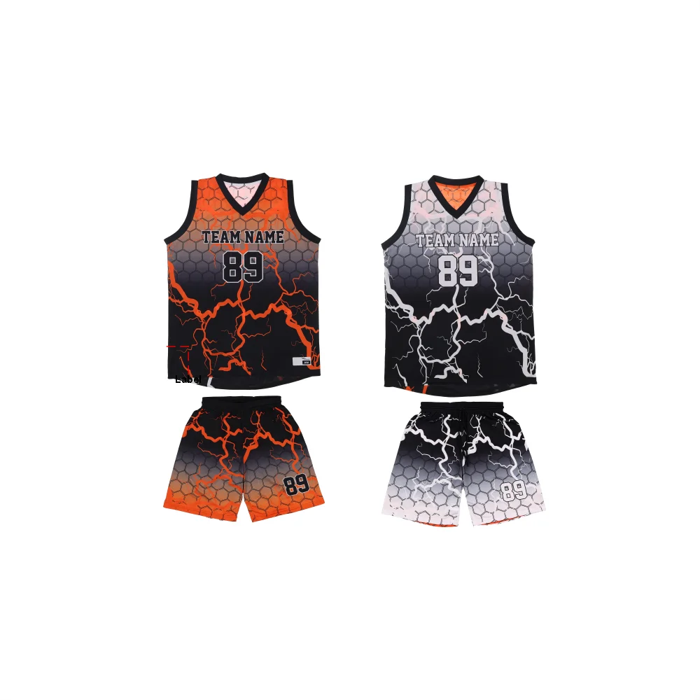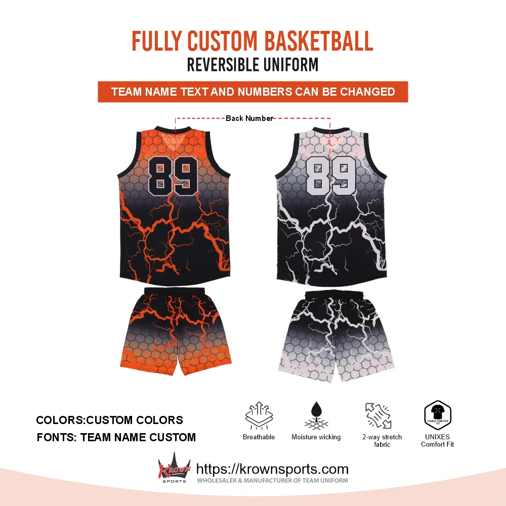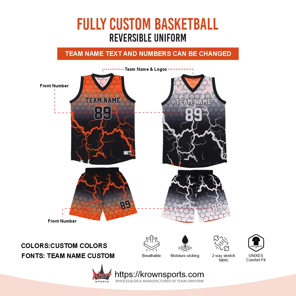 Custom Sublimated Basketball Uniform Black / Orange Reversible