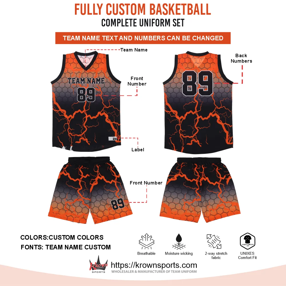 Custom Sublimated Basketball Uniform Black/Orange