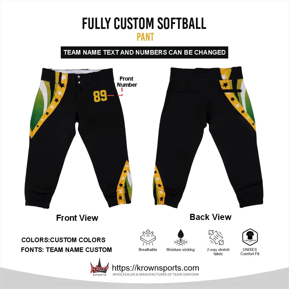 Our custom sublimated softball pants are designed for durability, comfort, and peak performance on the field. Crafted from premium-quality, breathable polyester fabric, these pants provide excellent flexibility and strength to handle intense gameplay, sliding, and quick movements while keeping players cool and comfortable.